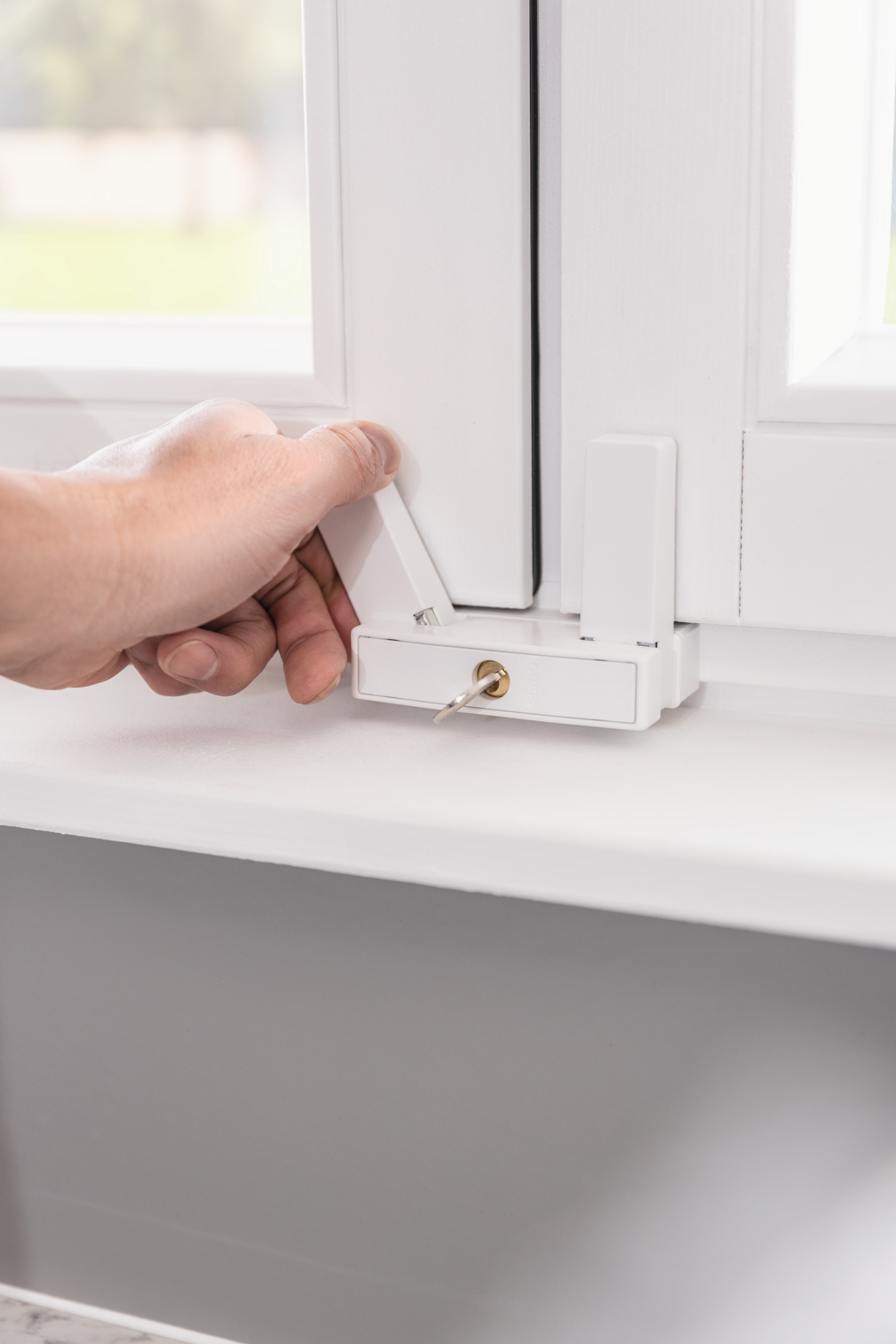 Fenster-Zusatzsicherung für Ein- oder Doppelflügelfenster mit oder ohne Mittelsteg.