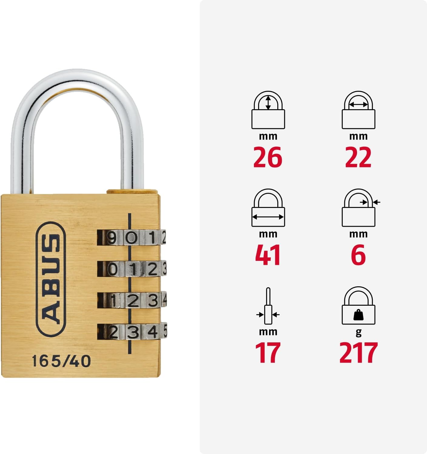 - 165/40: individuell einstellbarer, 4-stelliger Zahlencode